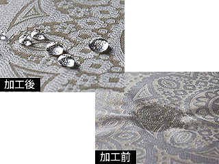 繊維の1本1本の深部まで、パールトーンを浸透させることで、高い撥水効果を発揮します。膜をはる防水加工と違い、生地本来の風合いや光沢、通気性を失わず、きもの本来の着心地を保ちます。