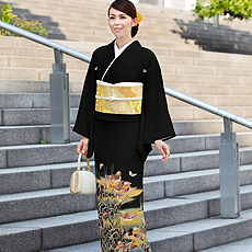 色留袖は既婚・未婚どちらの方も着用でき、式典の主役やご結婚式ではご親族の方が着られる事が多い着物です。