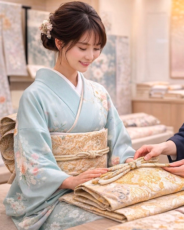 訪問着・帯・帯締め帯揚げのコーディネートを致します。
