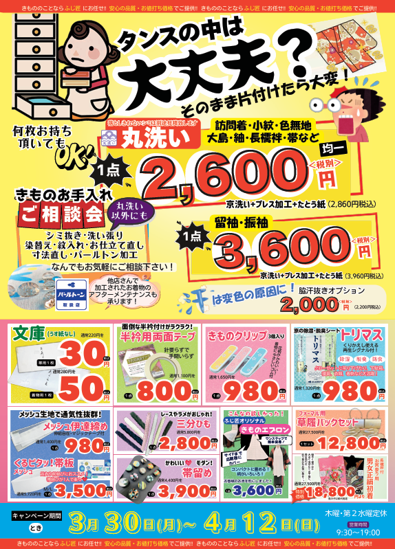 合わせて、着物のお手入れについての相談もお気軽にどうぞ
