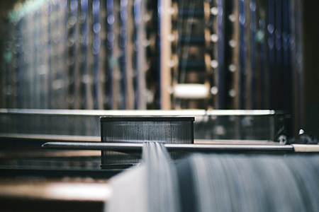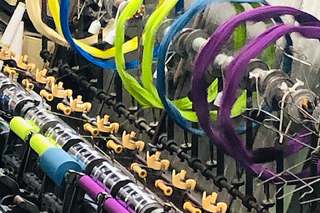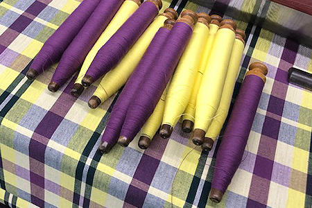 お互いの声が聞こえないくらいの音の中で織り上がった布が巻き取られていきます。